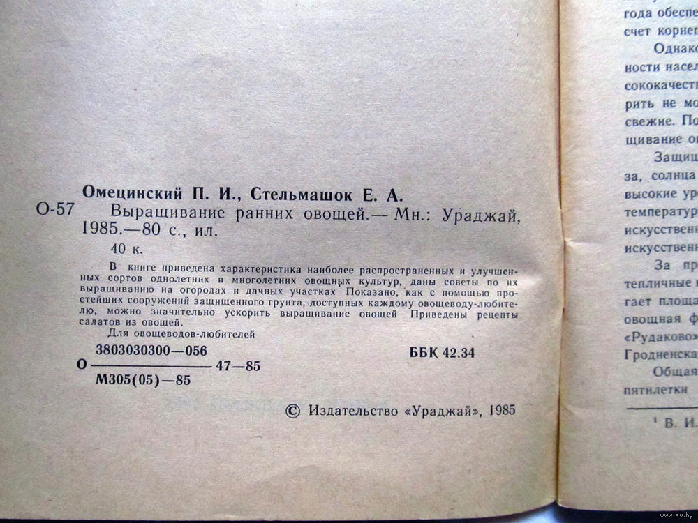 25-31 П.И. Омецинский Е.А. Стельмашок Выращивание ранних овощей Минск Ураджай 1985