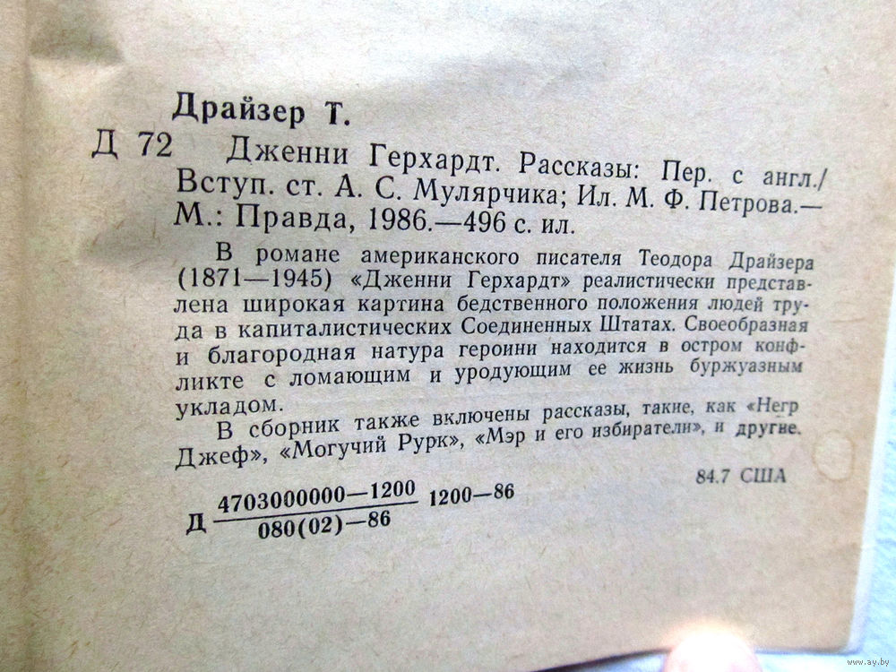 25-31 Теодор Драйзер Дженни Герхардт Рассказы Москва Правда 1986