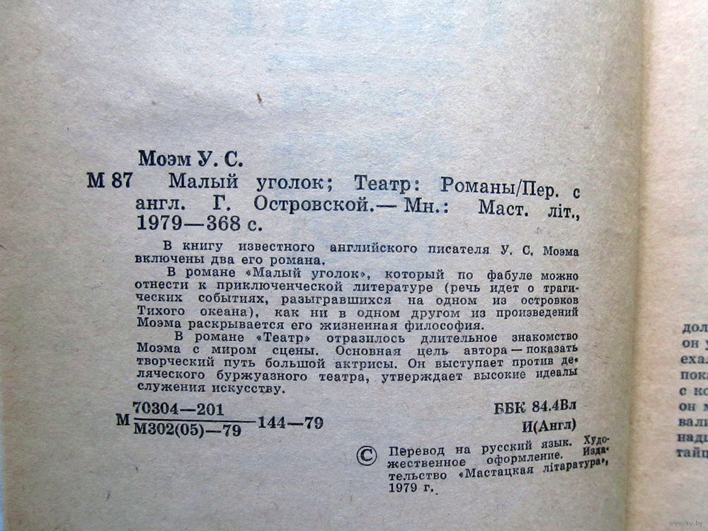 25-31 Уильям Сомерсет Моэм Малый уголок Театр Минск 1979