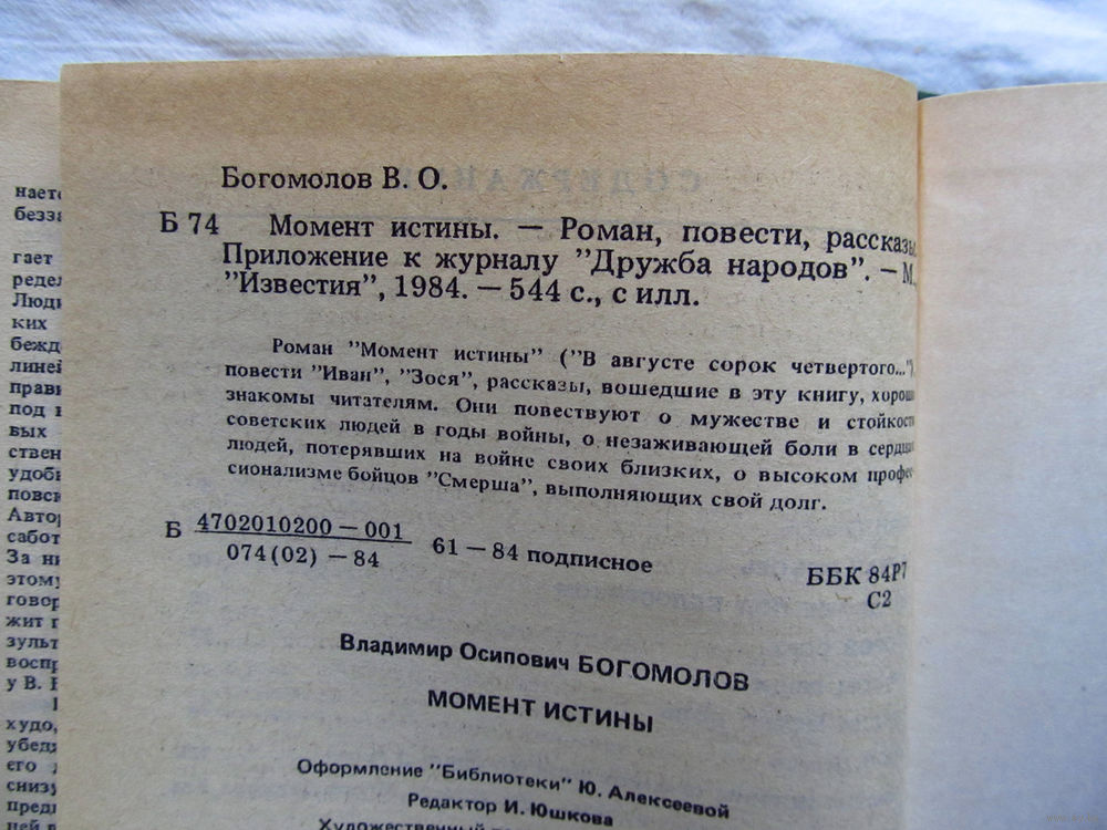 25-31 Владимир Богомолов Момент истины Москва Известия 1984