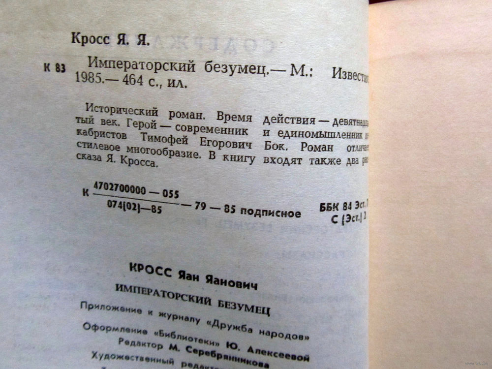 25-31 Яан Кросс Императорский безумец Москва Известия 1985