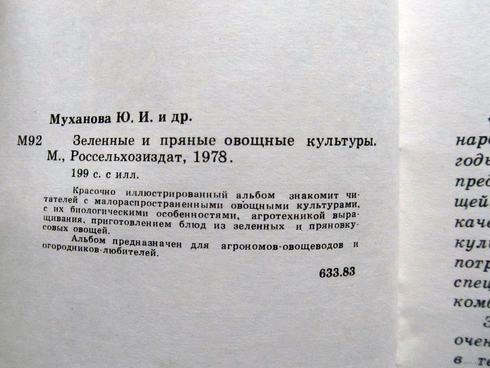 25-31 Ю. И. Муханова и др Зеленные и пряные овощные культуры Москва Россельхозиздат 1978