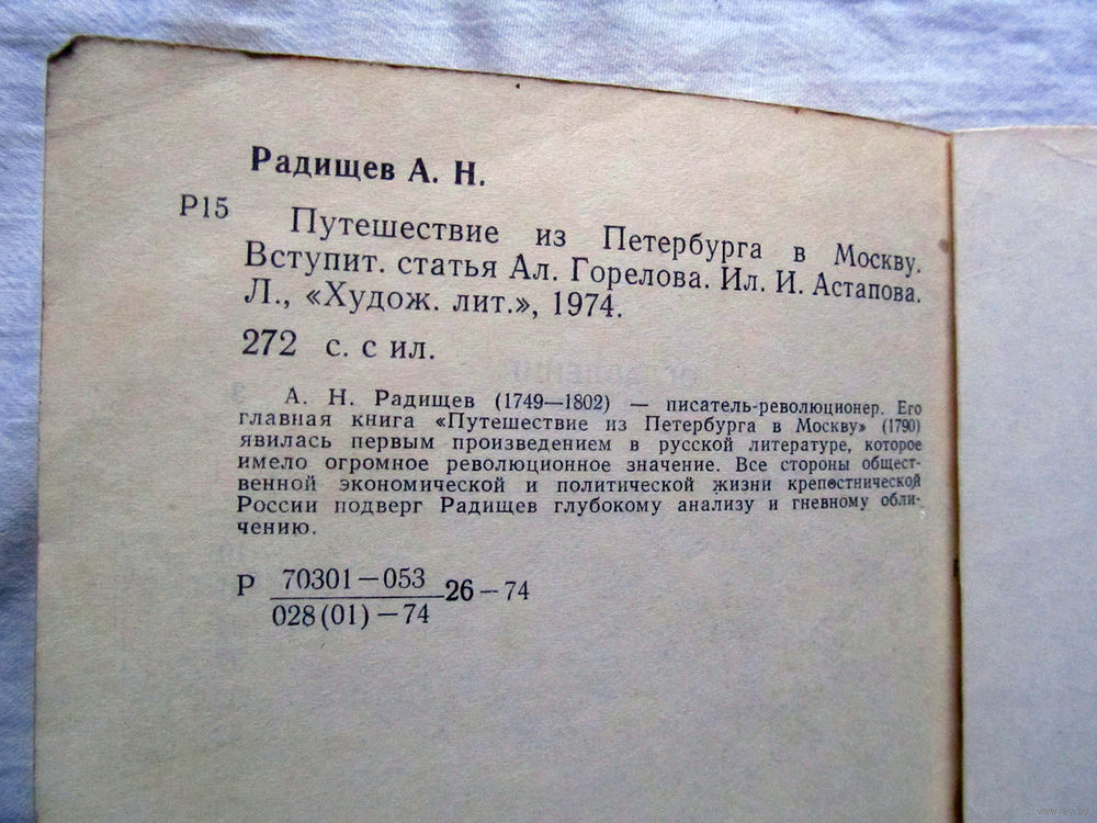25-32 А.Н. Радищев Путешествие из Петербурга в Москву Ленинград 1974