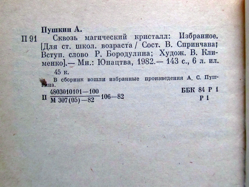 25-32 А.С. Пушкин Сквозь магический кристалл Избранное Минск 1982