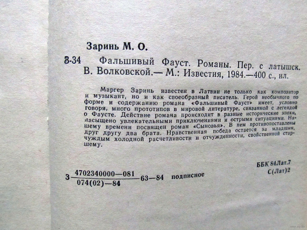 25-32 Маргер Заринь Фальшивый Фауст Москва Известия 1984