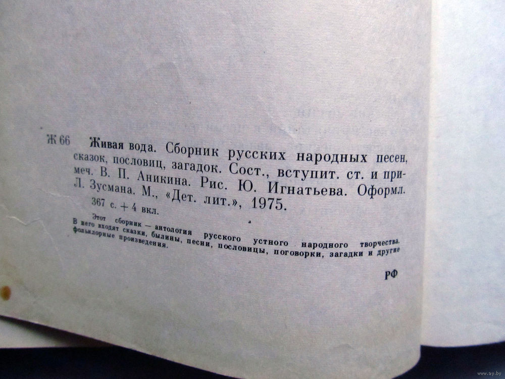 25-32 Живая вода Сборник русских народных песн, сказок, пословиц, загадок Москва Детская литература 1975