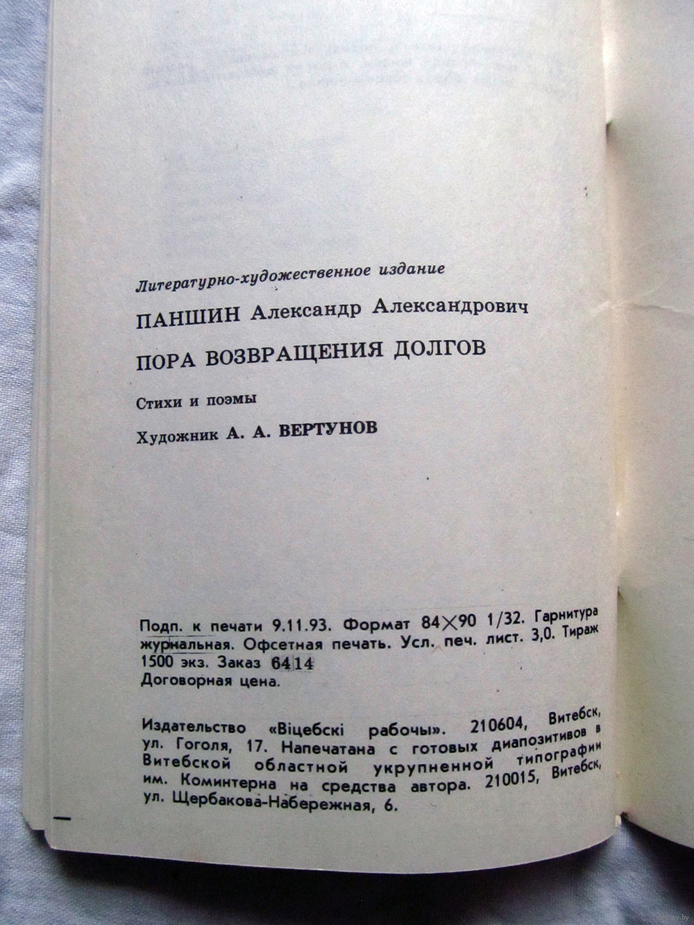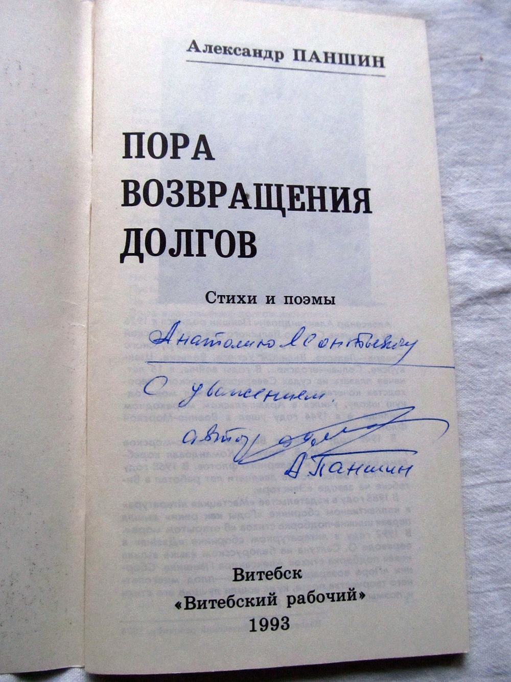25-33 Александр Паншин Пора возвращения долгов Стихи и поэмы С автографом автора Витебск Витебский рабочий 1993