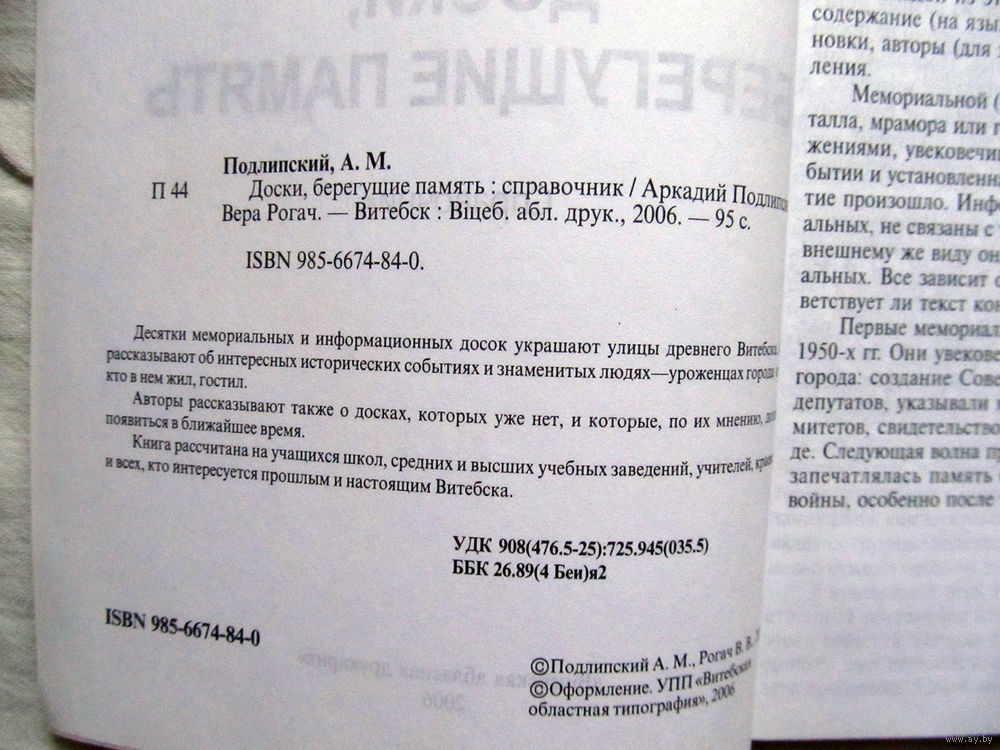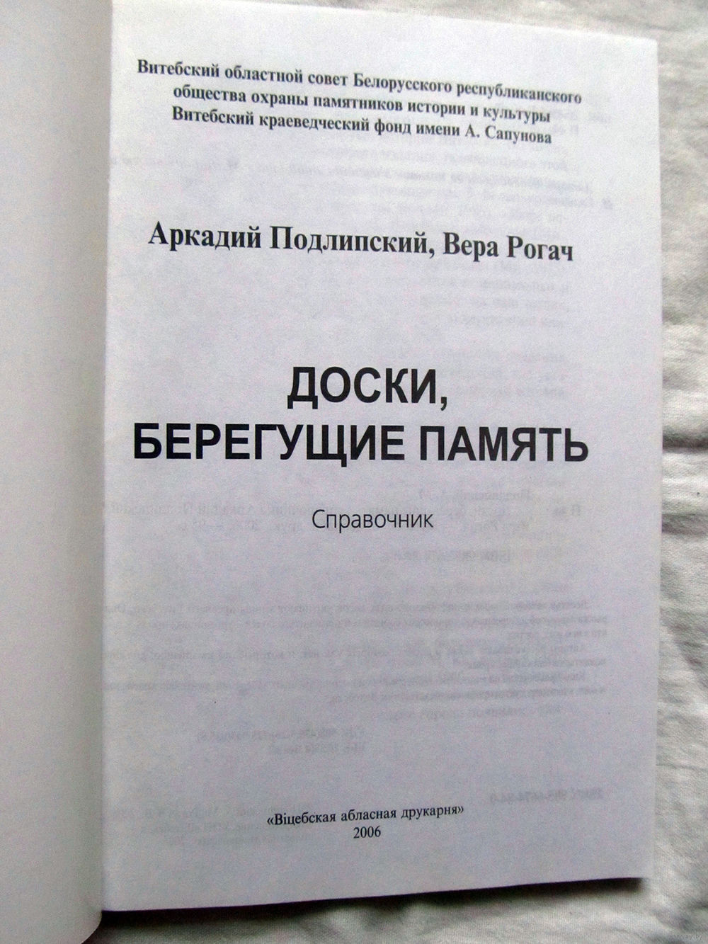 25-33 Аркадий Подлипский Вера Рогач Доски, берегущие память Справочник Витебск 2006