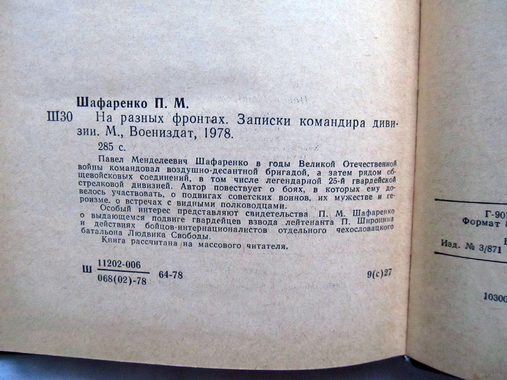 25-33 П.М. Шафаренко На разных фронтах Москва Воениздат 1978