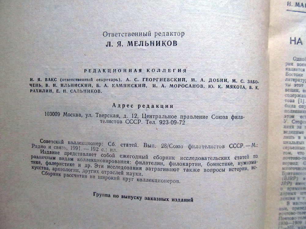 25-33 Советский коллекционер Номер 28 1991 Москва Радио и связь 1991 Есть все номера, начиная с первого Смотрите мои лоты
