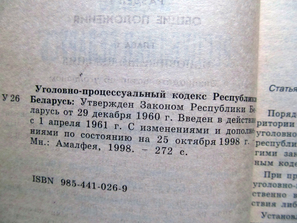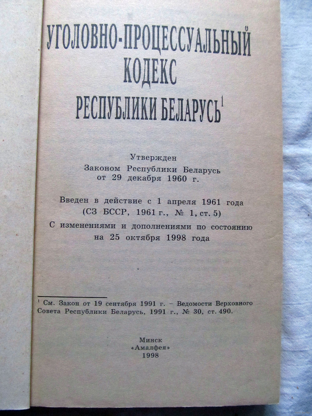 25-33 Уголовно-процессуальный кодекс Республики Беларусь Введен в действие с 1 апреля 1961 С изменениями и дополнениями по состоянию на 25 октября 1998 Минск Амалфея 1998