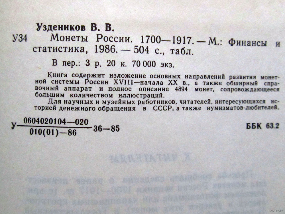 25-33 В.В. Уздеников Монеты России 1700 – 1917 Каталог Финансы и статистика Москва 1986