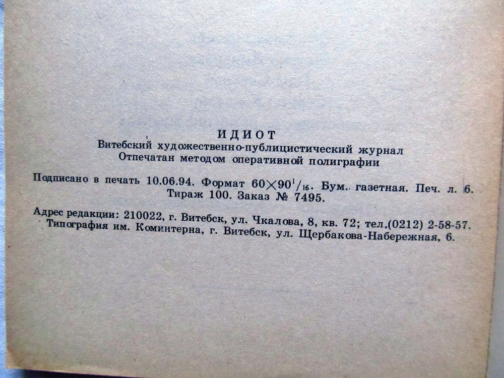 25-33 Витебский художественно-публицистический журнал Идиот Номер 29 Июнь 1994