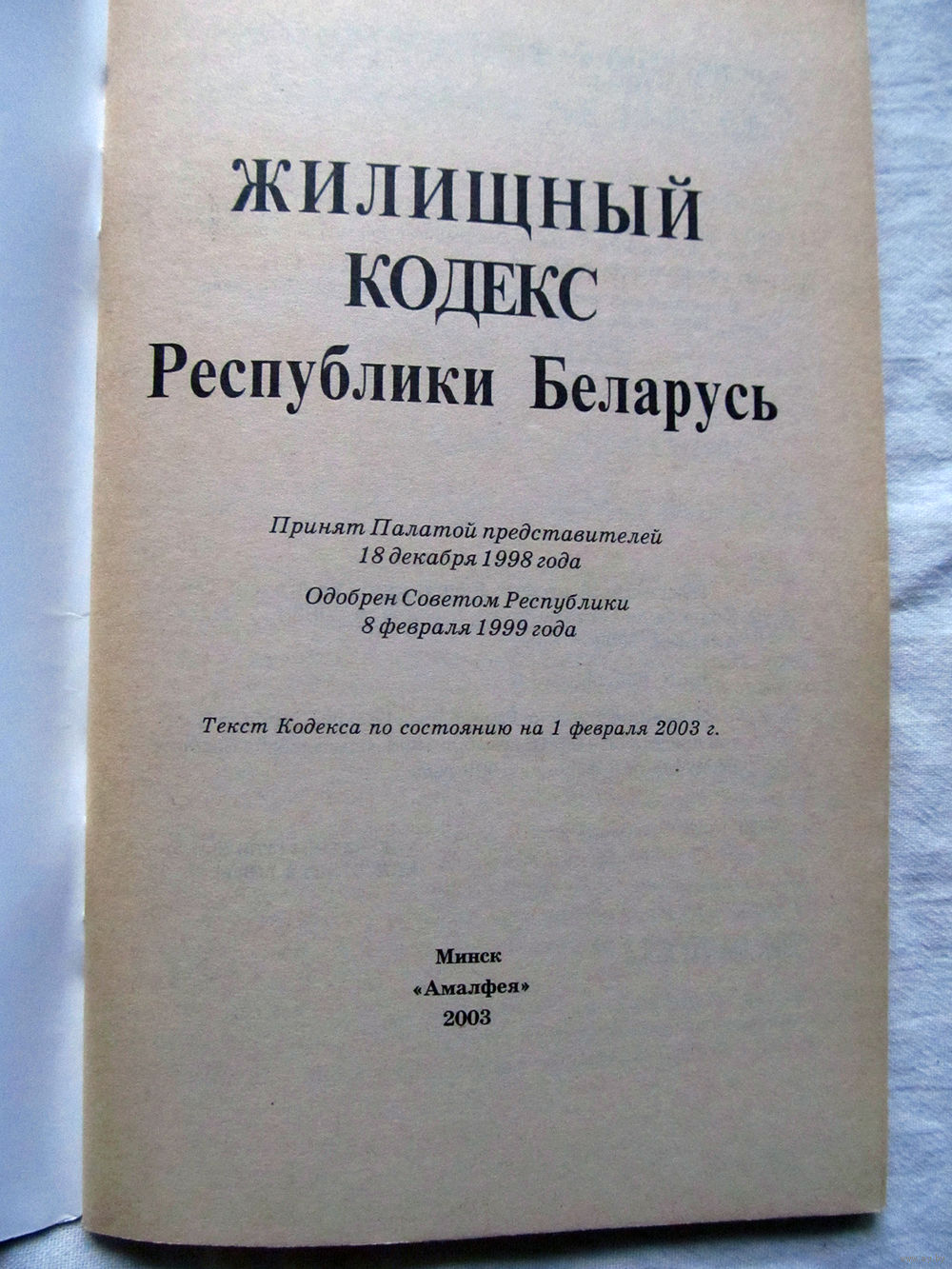 25-33 Жилищный кодекс Республики Беларусь на 1 февраля 2003 Минск Амалфея 2003