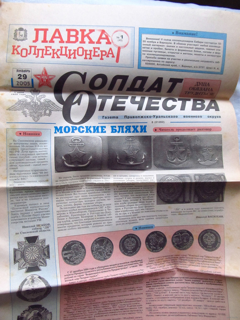 25-34 БК Газета Солдат отечества 29 января 2005 Выпуск 1 (49) Лавка коллекционера