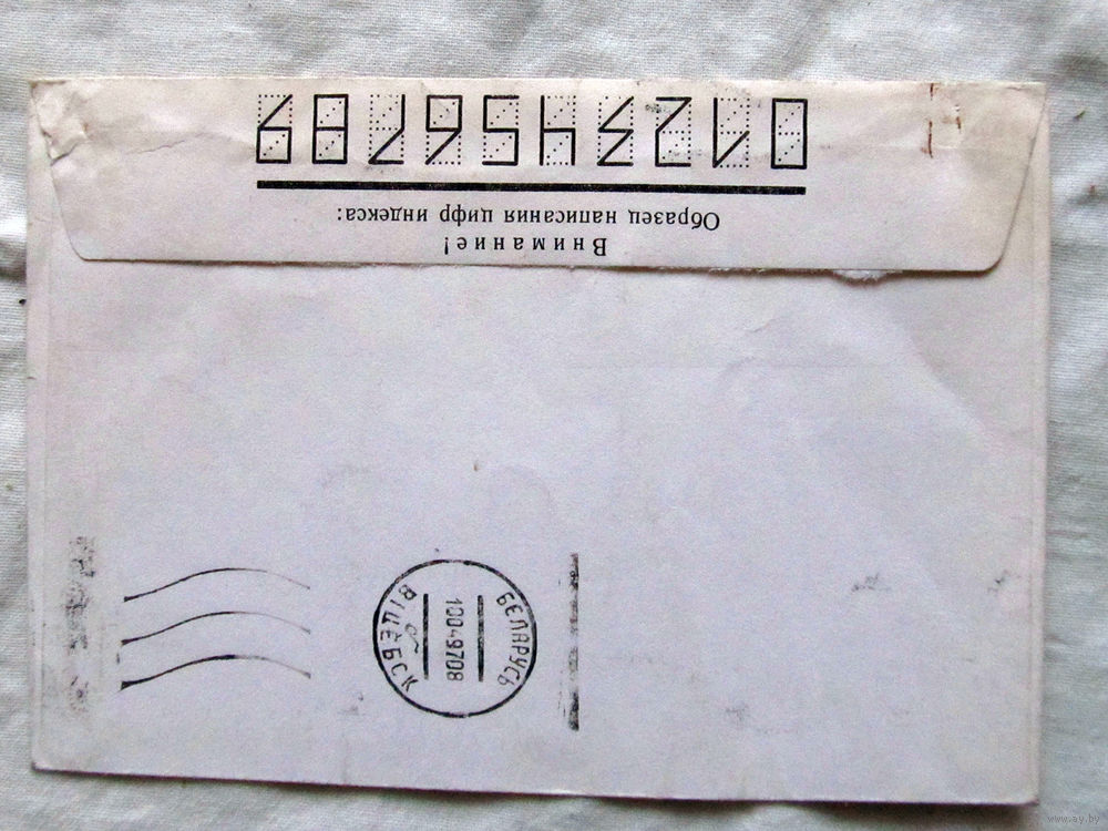 25-34 БК Конверт Прошел почту Апрель 1997 Марка Беларусь Погоня 1992 с надпечаткой