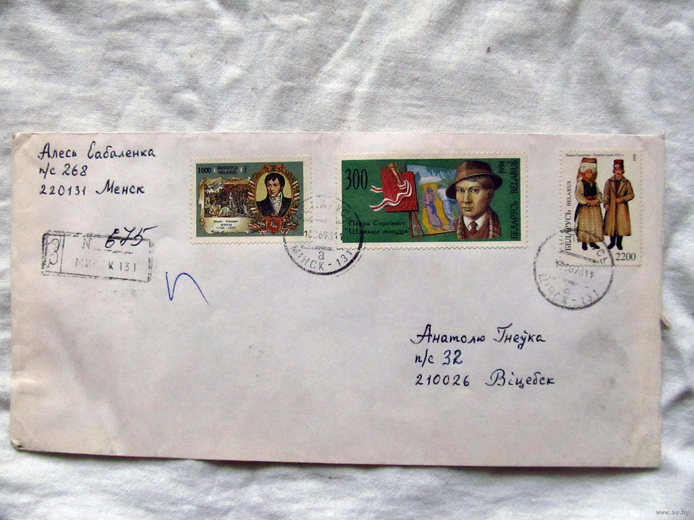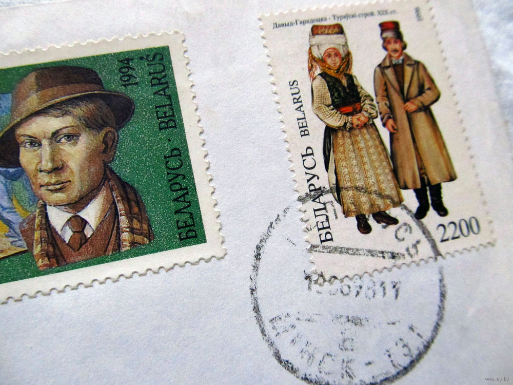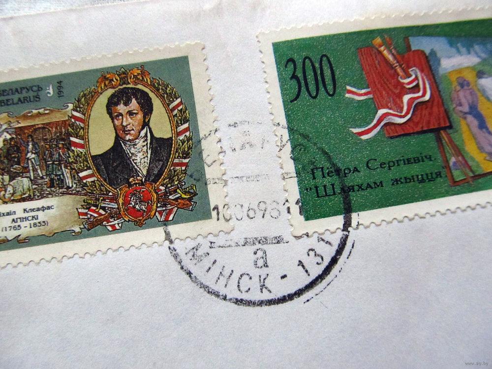 25-34 БК Конверт Прошел почту Июнь 1998 Марки Мiхаiл Клеафас Агiнскi 1994 Пётра Сергiевiч Шляхам жыцця 1994
