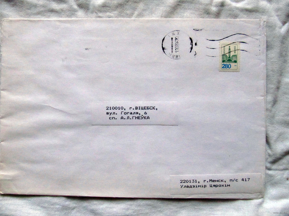 25-34 БК Конверт Прошел почту Март 1996 Марка Беларусь 1995