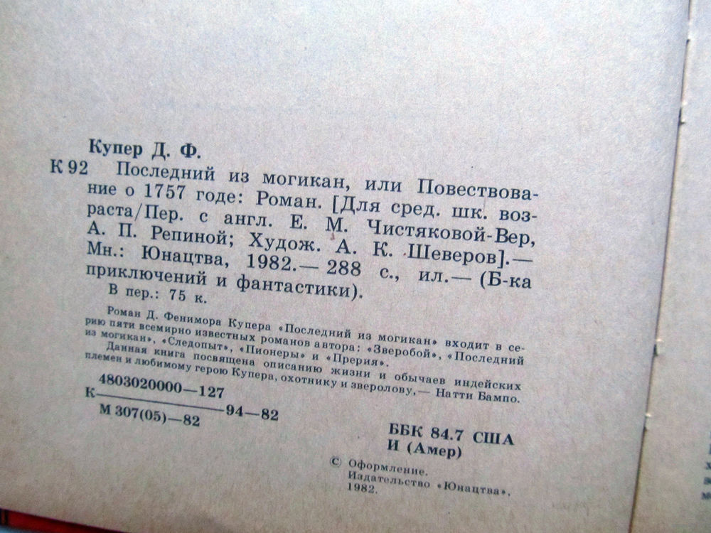 25-34 Джеймс Фенимор Купер Последний из могикан Минск Юнацтва 1982 Серия ПФ