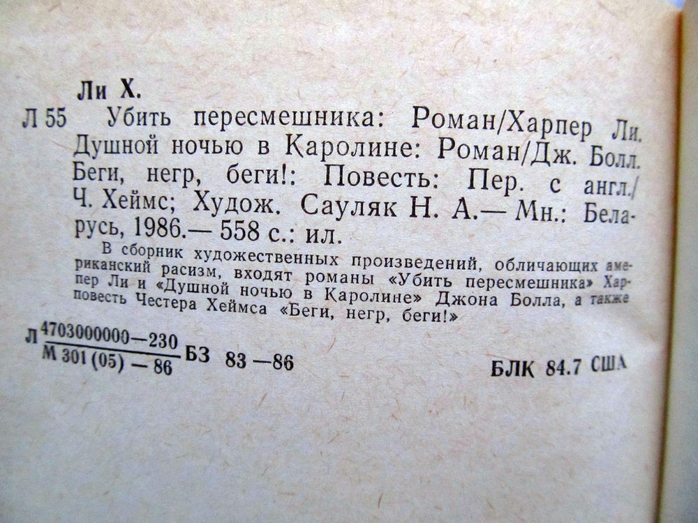 25-34 Харпер Ли Убить пересмешника Джон Болл Душной ночью в Каролине Честер Хеймс Беги, негр, беги! Минск Беларусь 1986