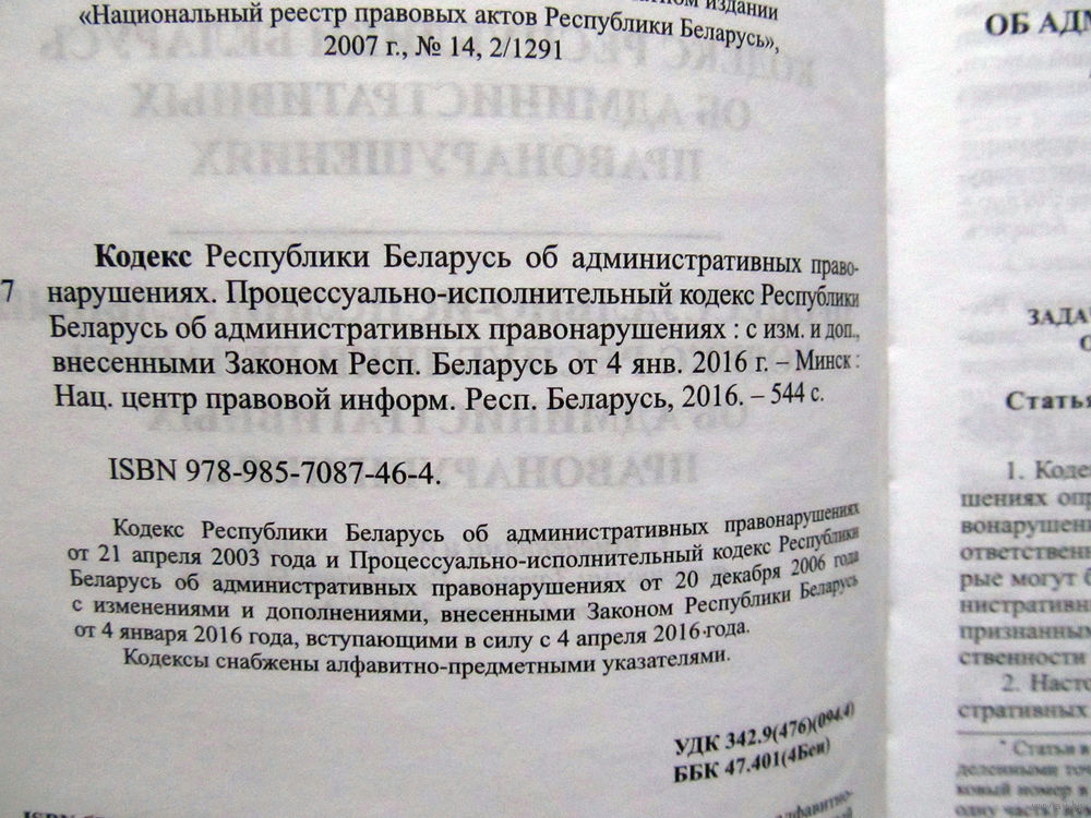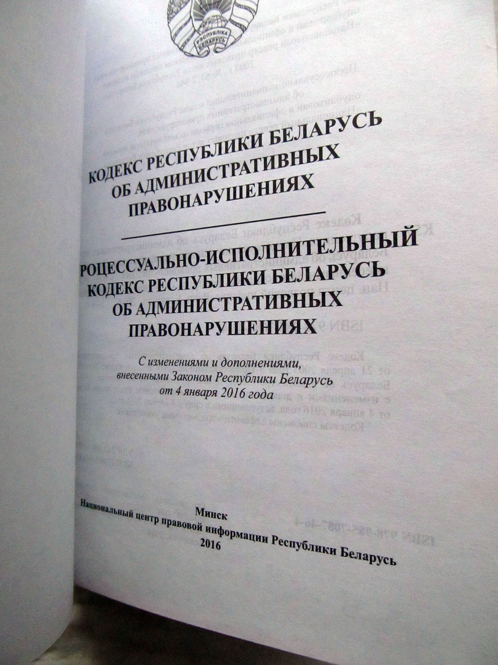 25-34 Кодекс Республики Беларусь об административных правонарушениях Процессуально-исполнительный кодекс Республики Беларусь об административных правонарушениях С изменениями и дополнениями от 4 января 2016 Минск НЦПИРБ 2016