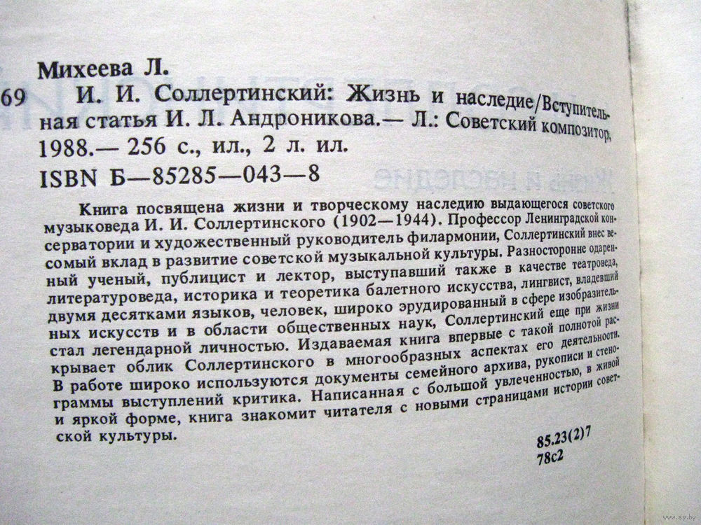 25-34 Л. Михеева И.И. Соллертинский Жизнь и наследие Ленинград Советский композитор 1988