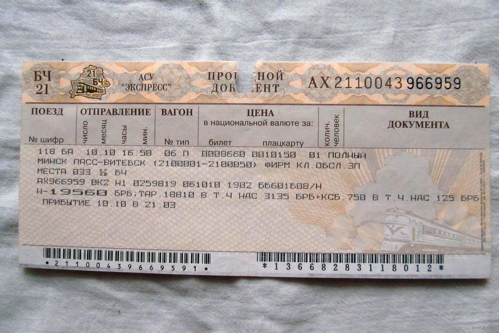 25-34 П1 Билет на поезд Проездной документ Белорусская железная дорога 2010