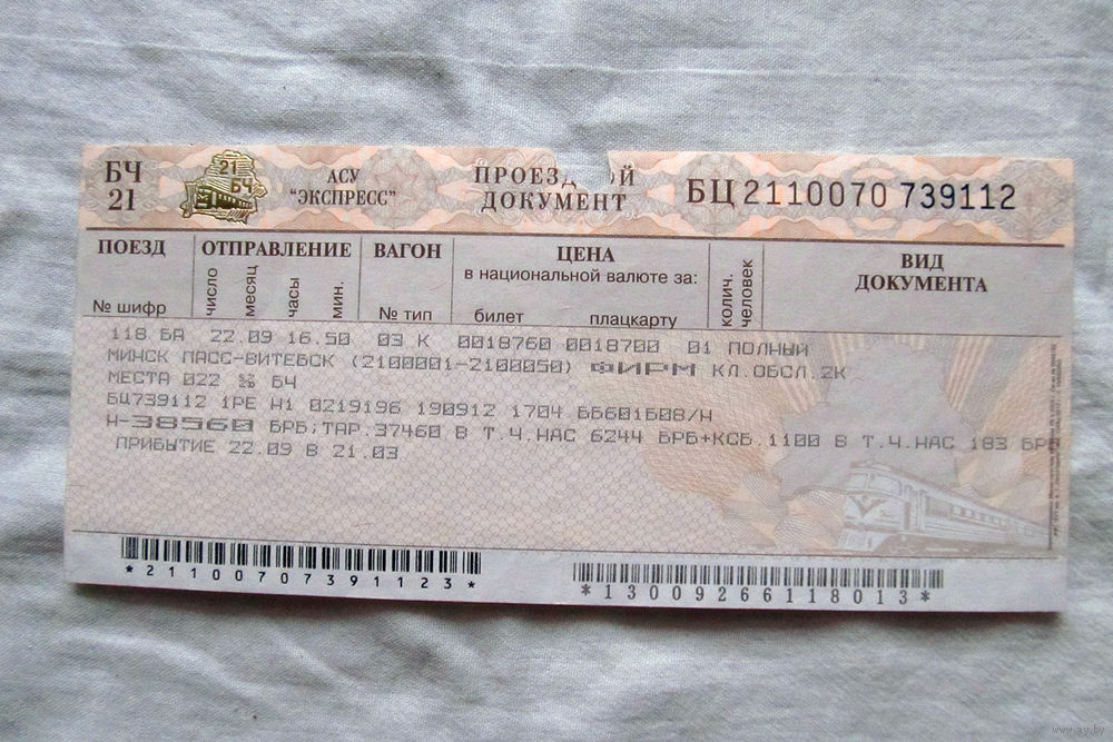 25-34 П1 Билет на поезд Проездной документ Белорусская железная дорога 2012