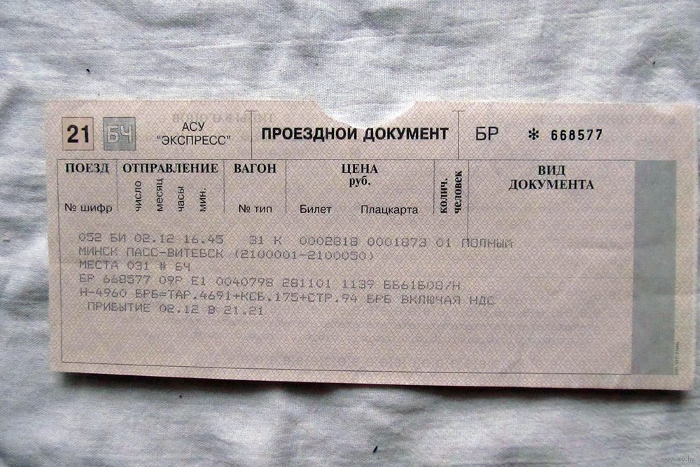 25-34 П1 Билет на поезд Проездной документ Белорусская железная дорога РУП БУТ З1044