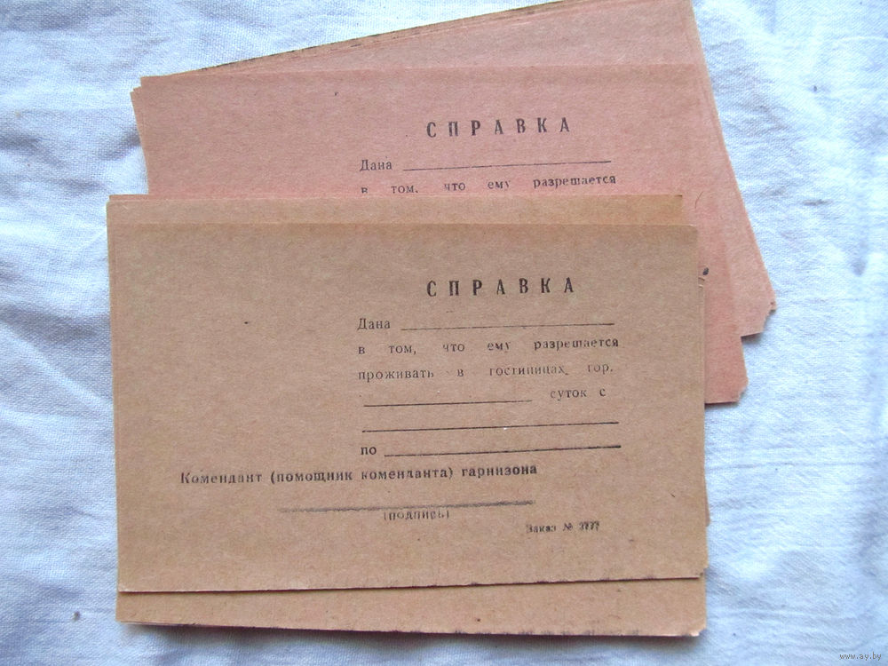 25-34 П1 Бланк Справка Разрешение на проживание в гостиницах МО СССР Ориентировочно 1960-70-е