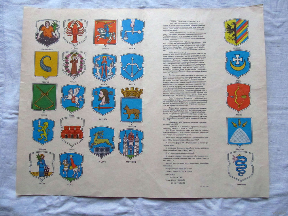 25-34 П1 Буклет Плакат Гербы городов Белоруссии 1991