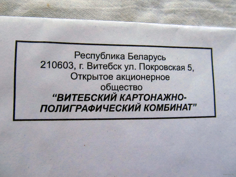 25-34 П1 Конверт ВКПК Витебский картонажно-полиграфический комбинат