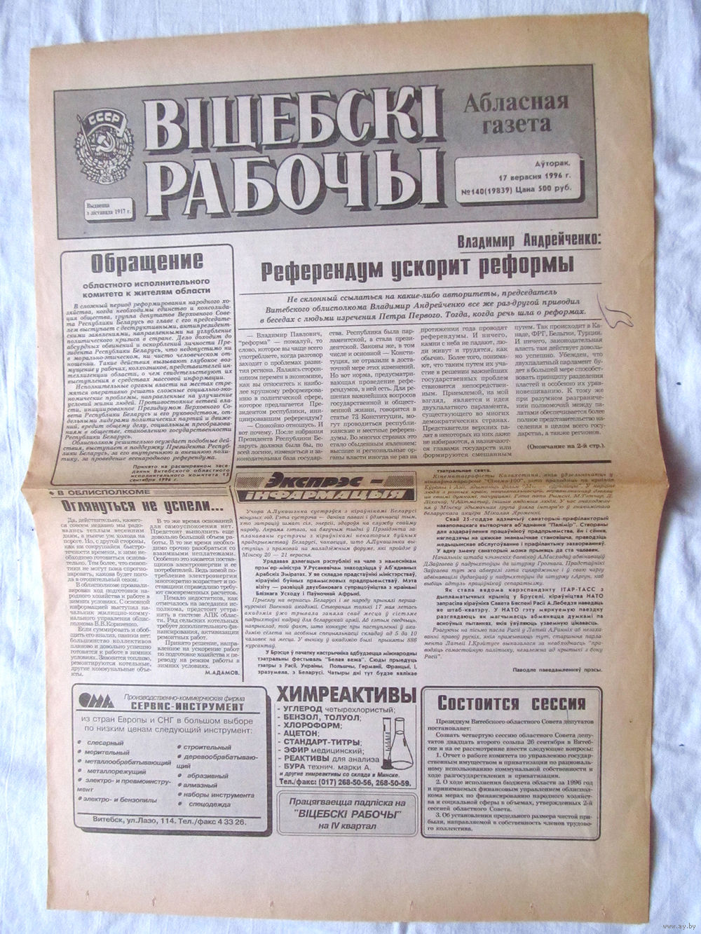 25-34 П2 1149 Газета Вiцебскi рабочы 17 сентября 1996 Полная Раритет Владимир Андрейченко Референдум ускорит реформы