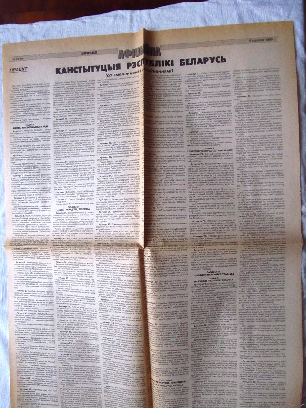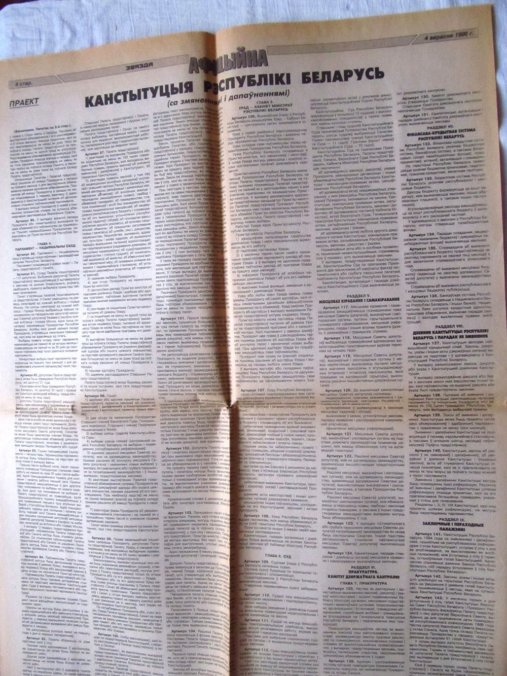 25-34 П2 1165 Газета Звязда 4 сентября 1996 Полный лист Конституция Республики Беларусь с изменениями и дополнениями Проект Раритет