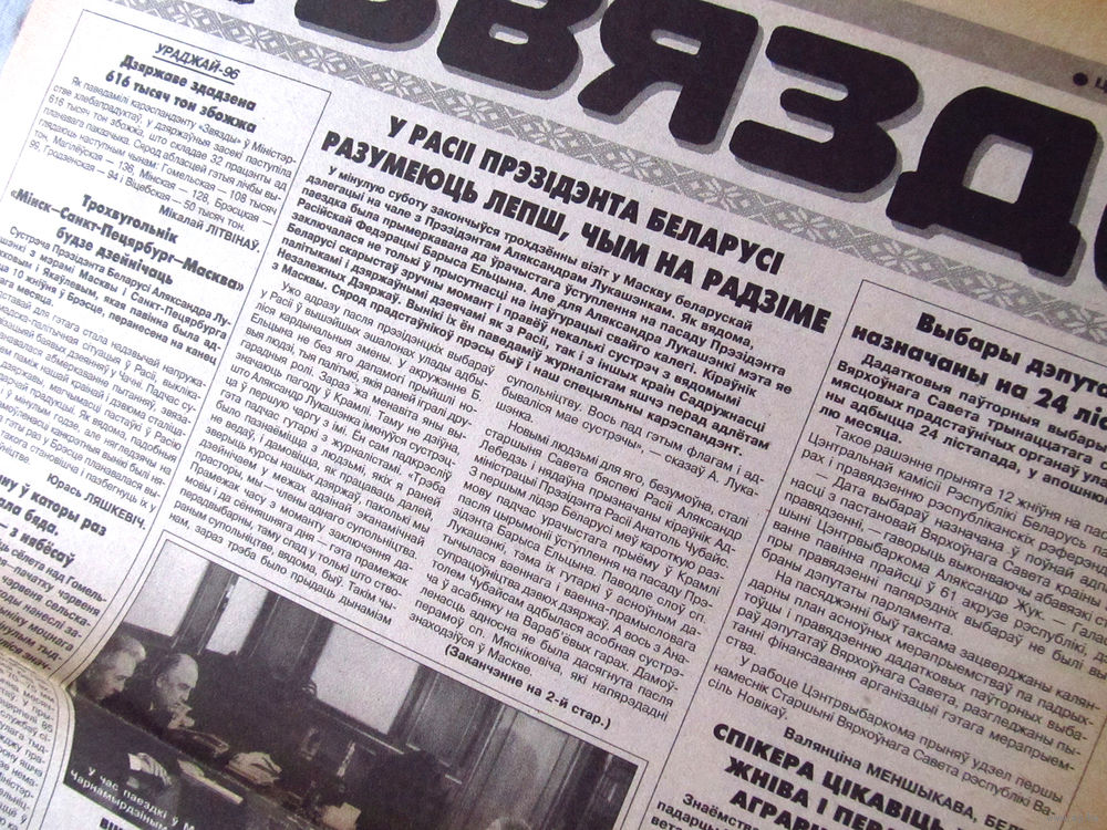 25-34 П2 1187 Газета Звязда 13 августа 1996 Полный лист Юрась Ляшкевiч У Расii Прэзiдэнта Беларусi разумеюць лепш, чым на радзiме БелТА Рэферэндум вырашыць канстiтуцыйны крызiс