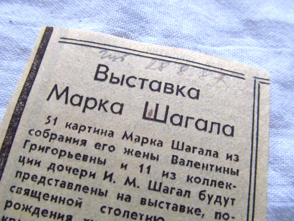25-34 П2 1268 Газета Известия 28 августа 1987 Вырезка Выставка Марка шагала