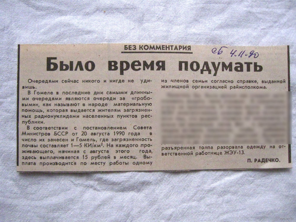 25-34 П4 1-016 Газета Советская Белоруссия 04-11-1990 Вырезка Было время подумать ЧАЭС Чернобыль Чернобыльская АЭС