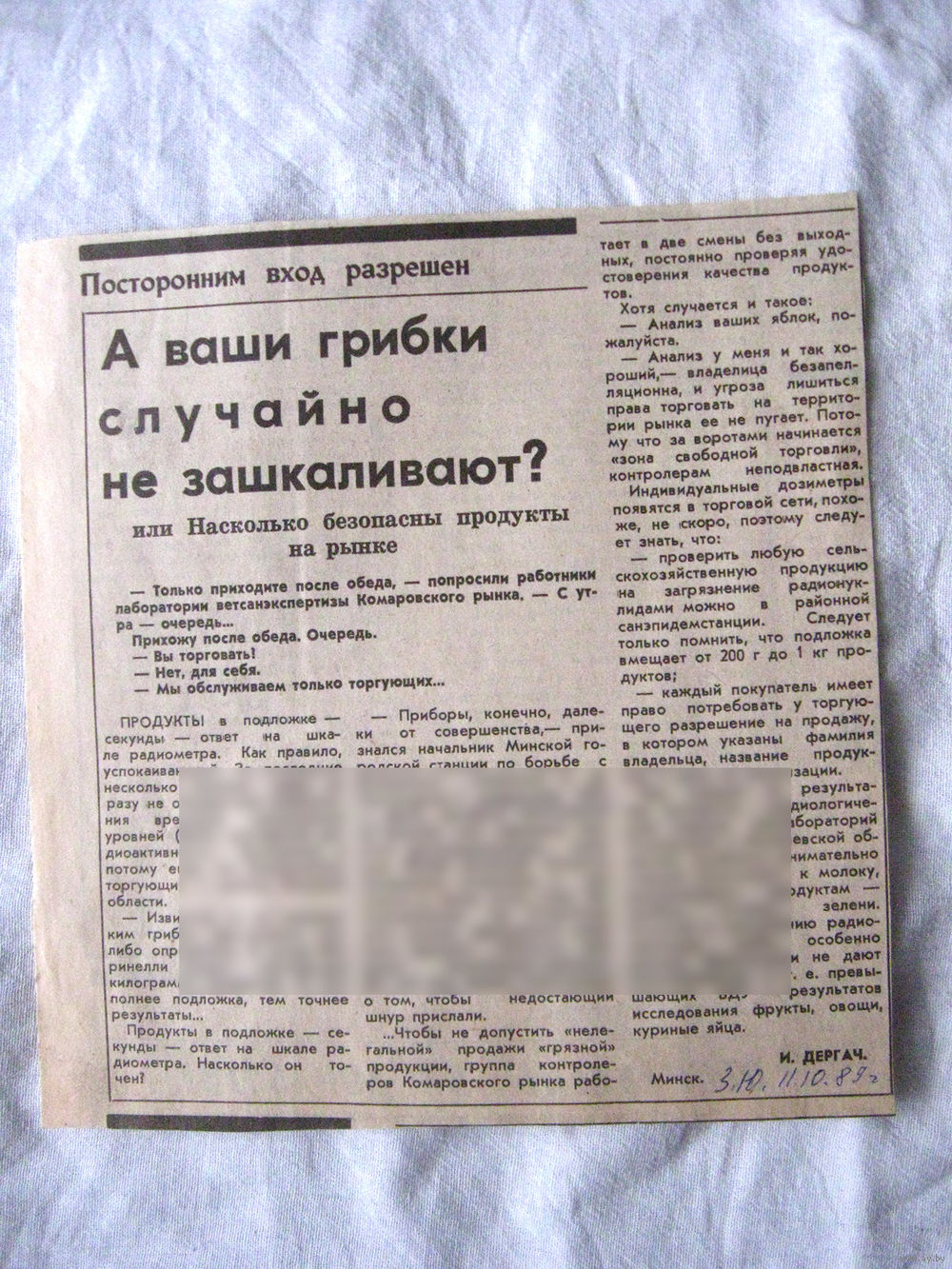 25-34 П4 1-041 Газета Знамя юности 11-10-1989 Вырезка А ваши грибки случайно не зашкаливают? Радиация