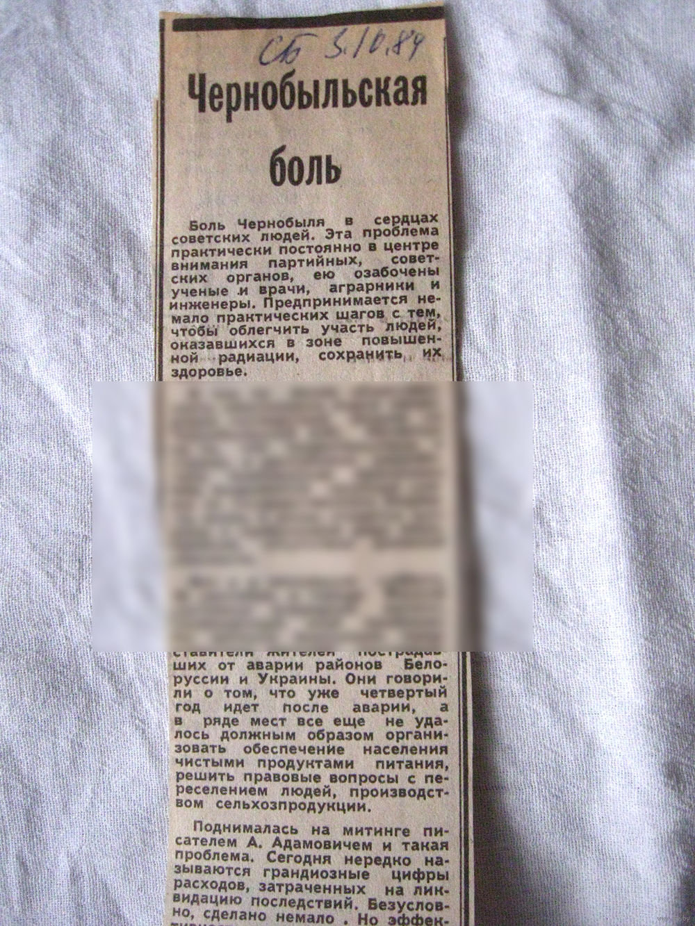 25-34 П4 1-043 Газета Советская Белоруссия 03-10-1989 Вырезка Чернобыльская боль ЧАЭС Чернобыль Чернобыльская АЭС
