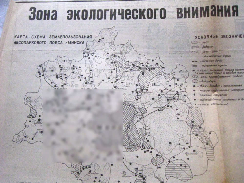 25-34 П4 11-405 Газета Вечерний Минск 20-02-1991 Вырезка Зона экологического внимания Карта-схема землепользования лесопаркового пояса Минска
