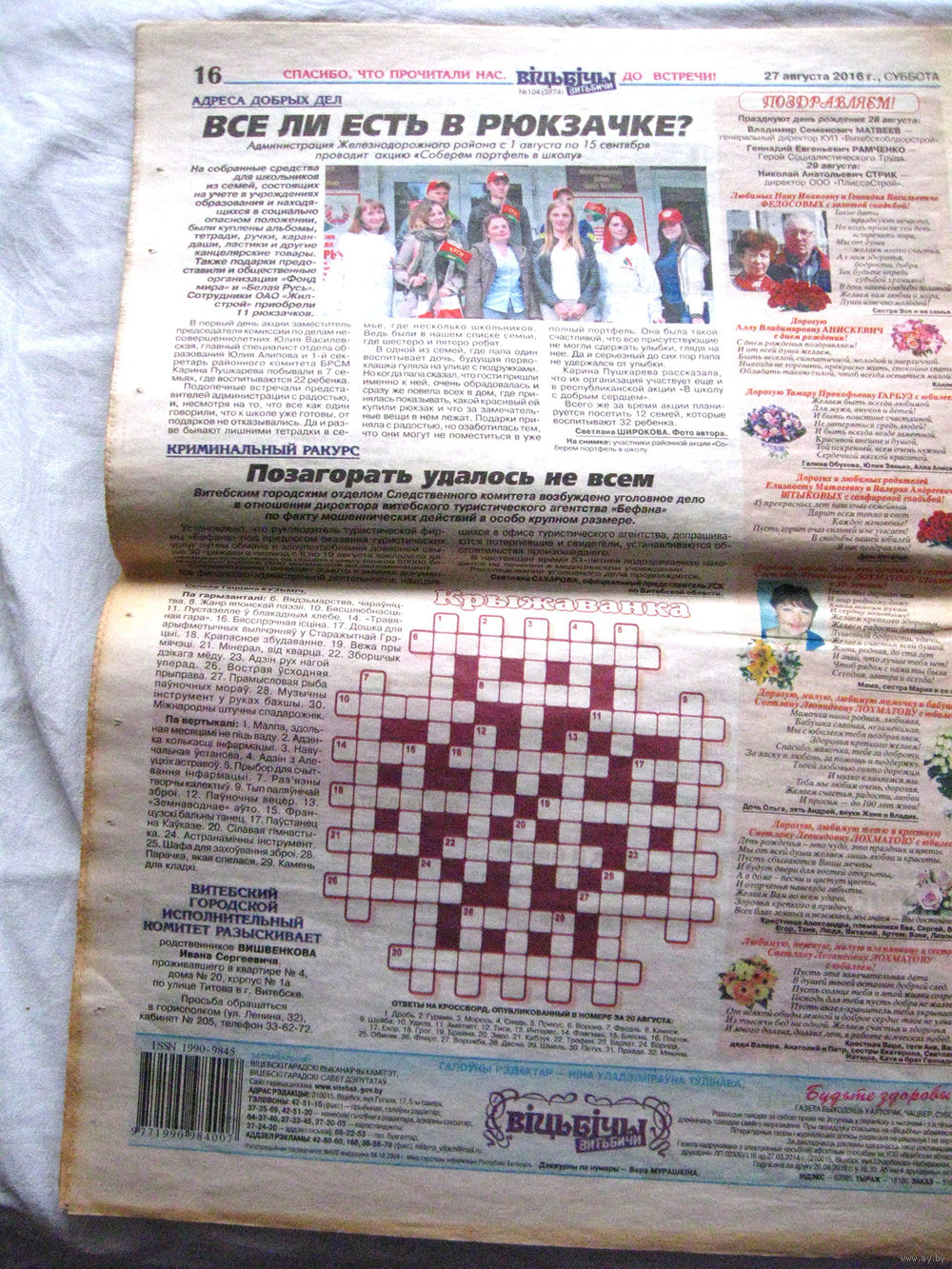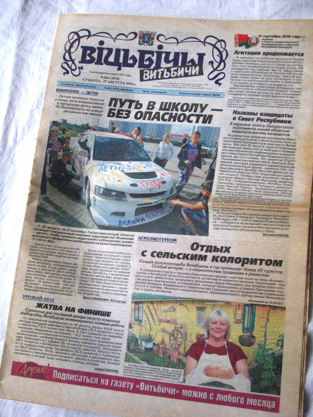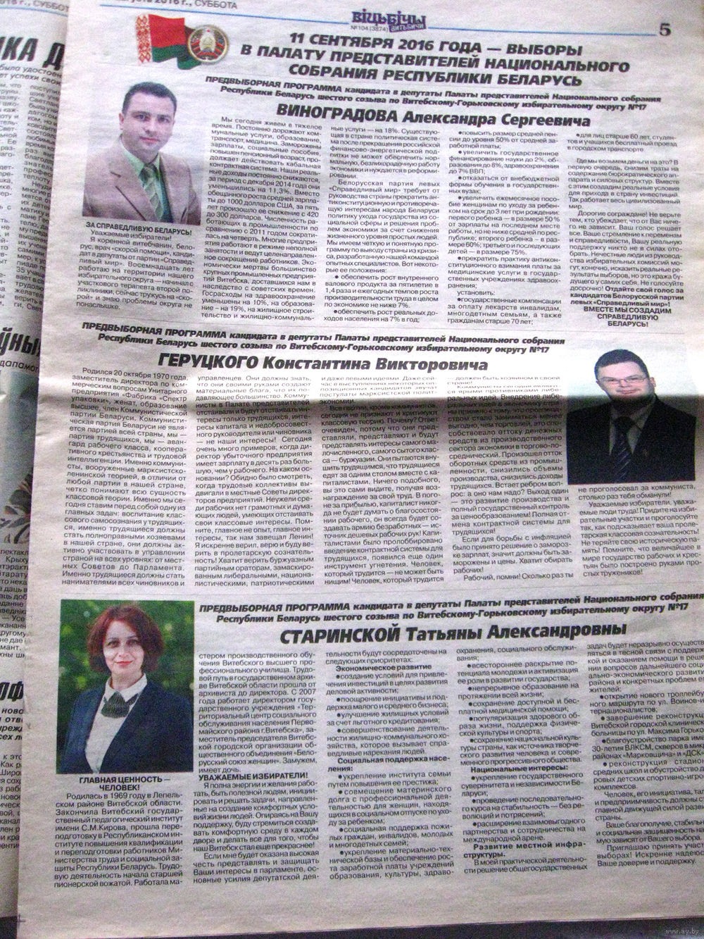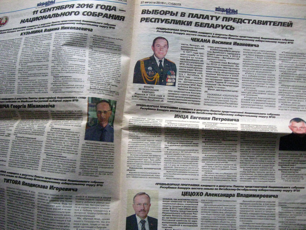 25-34 П4 11-416 Газета Витьбичи 27-08-2016 Кандидаты в депутаты Палата представителей Национального собрания Республики Беларусь Витебск