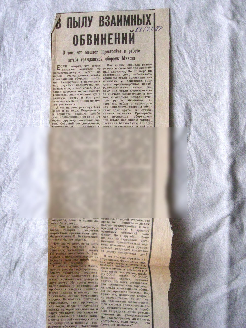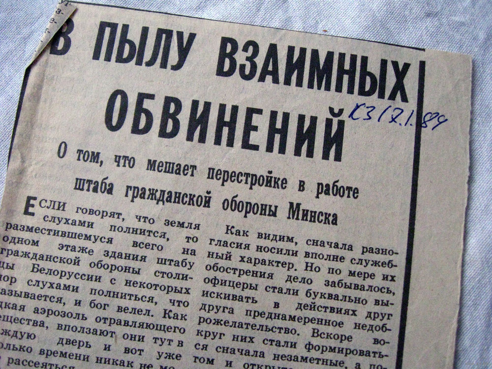 25-34 П4 5-192 Газета Красная звезда 17-01-1989 Вырезка В пылу взаимных обвинений Гражданская оборона Минск