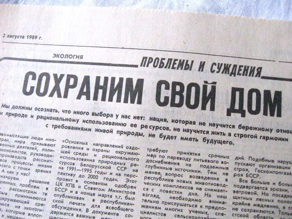 25-34 П4 5-194 Газета Советская Белоруссия 02-08-1989 Вырезка Созраним свой дом Экология