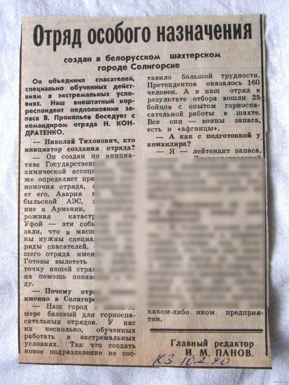 25-34 П4 6-227 Газета Красная звезда 10-02-1990 Вырезка Отряд особого назначения