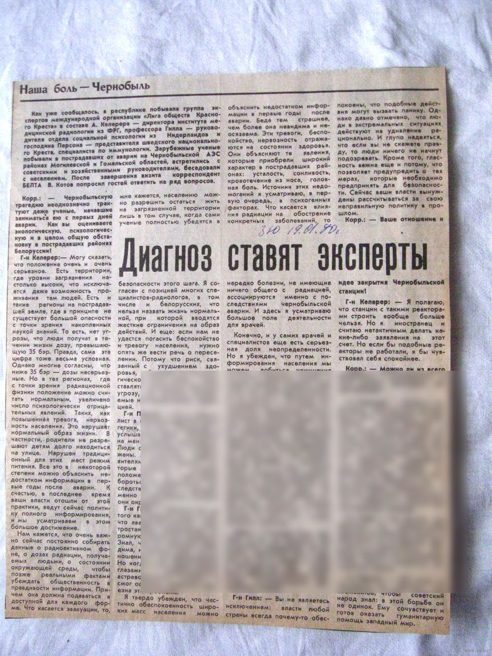 25-34 П4 6-240 Газета Знамя юности 19-01-1990 Вырезка Наша боль – Чернобыль Диагноз ставят эксперты ЧАЭС Чернобыль Чернобыльская АЭС