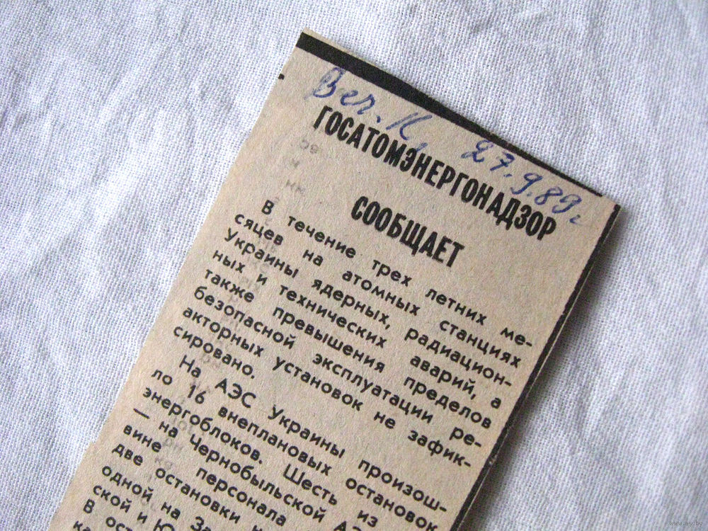 25-34 П4 9-344 Газета Вечерний Киев 27-9-1989 Вырезка Госатомэнергонадзор сообщает