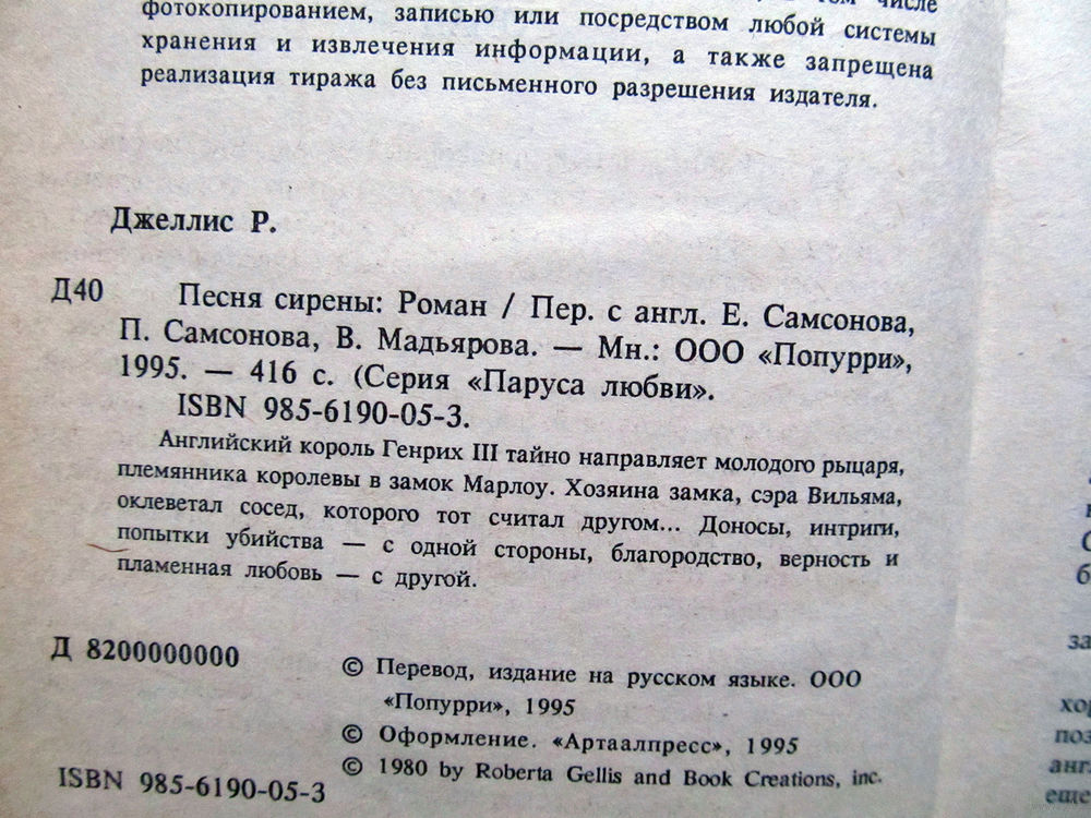 25-34 Роберта Джеллис Песнь сирены Минск 1995