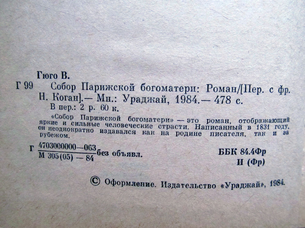 25-34 Виктор Гюго Собор Парижской богоматери Минск Ураджай 1984