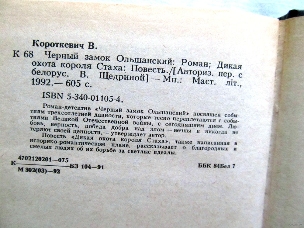 25-34 Владимир Короткевич Черный замок Ольшанский Дикая охота короля Стаха Минск 1992