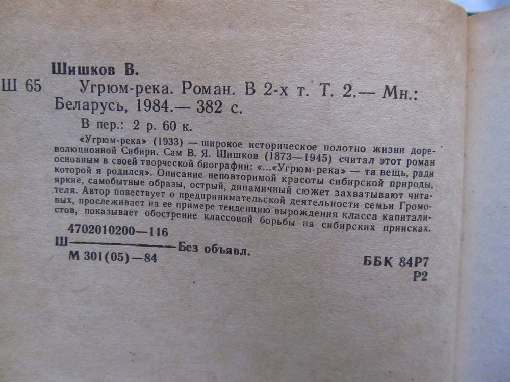 25-34 Вячеслав Шишков Угрюм-река 2 тома Минск Беларусь 1984